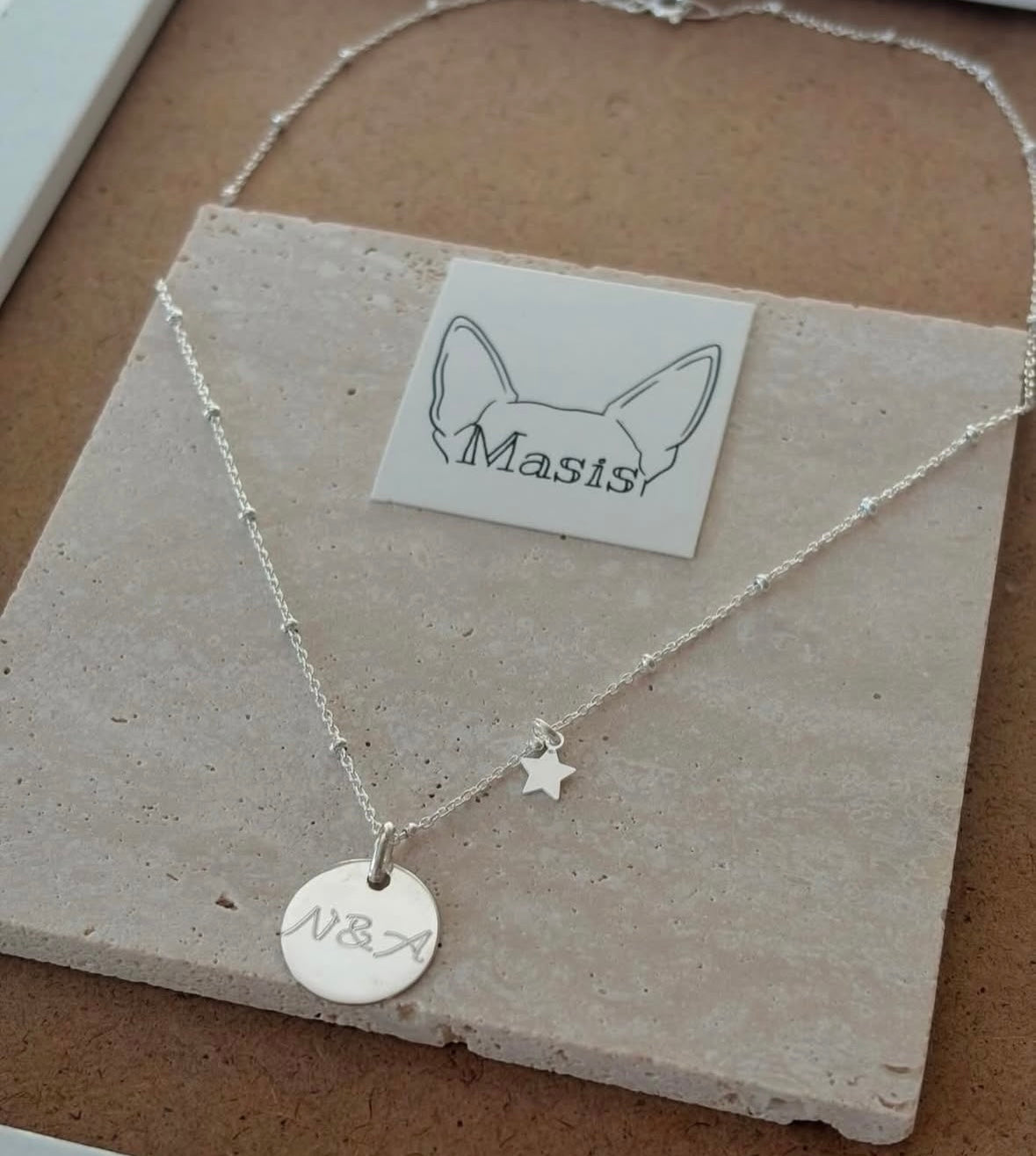 Cadena de plata 925 con bolas intercaladas con medida de 40 cm de largo, Perfecta para añadir una medalla con tu grabado personalizado.