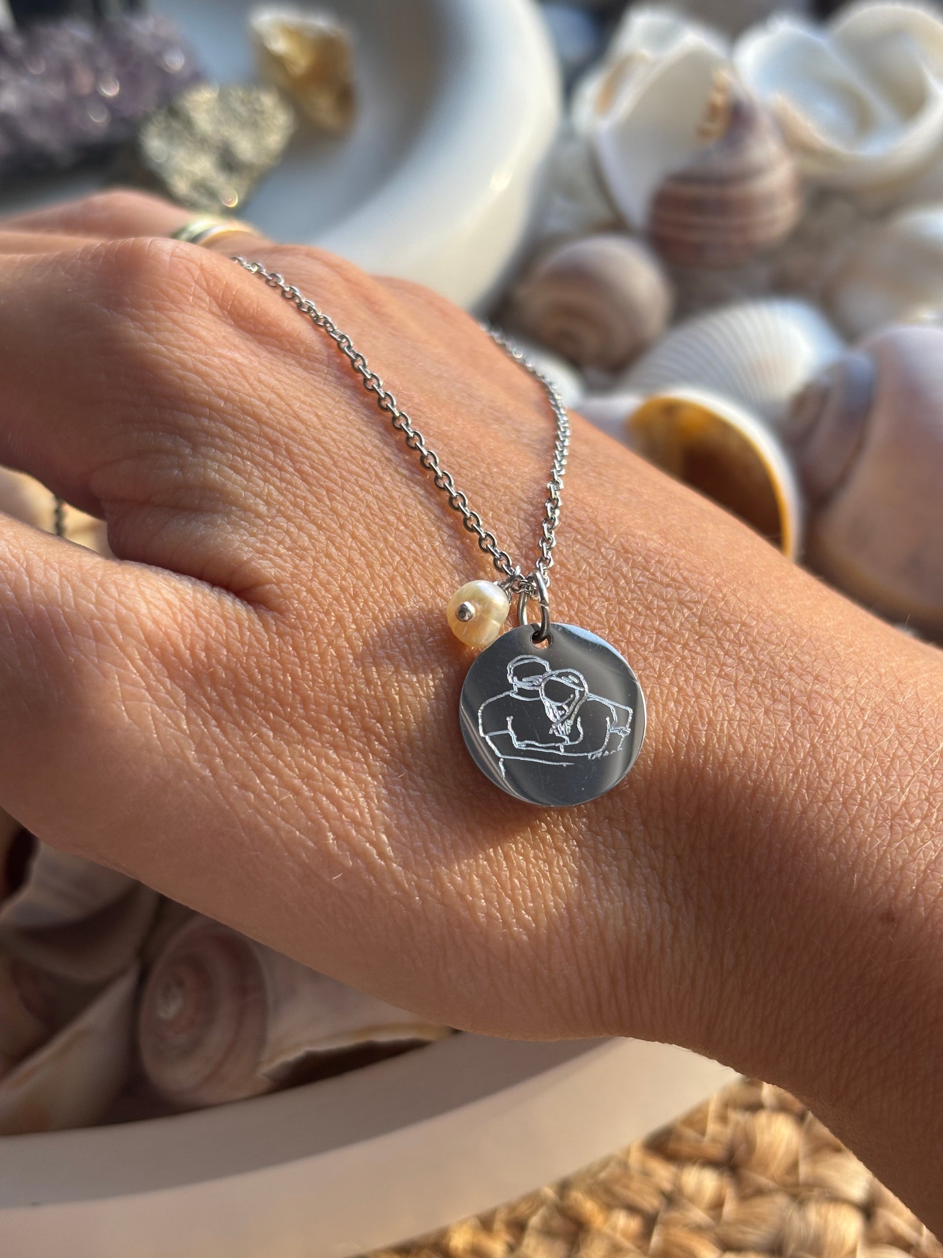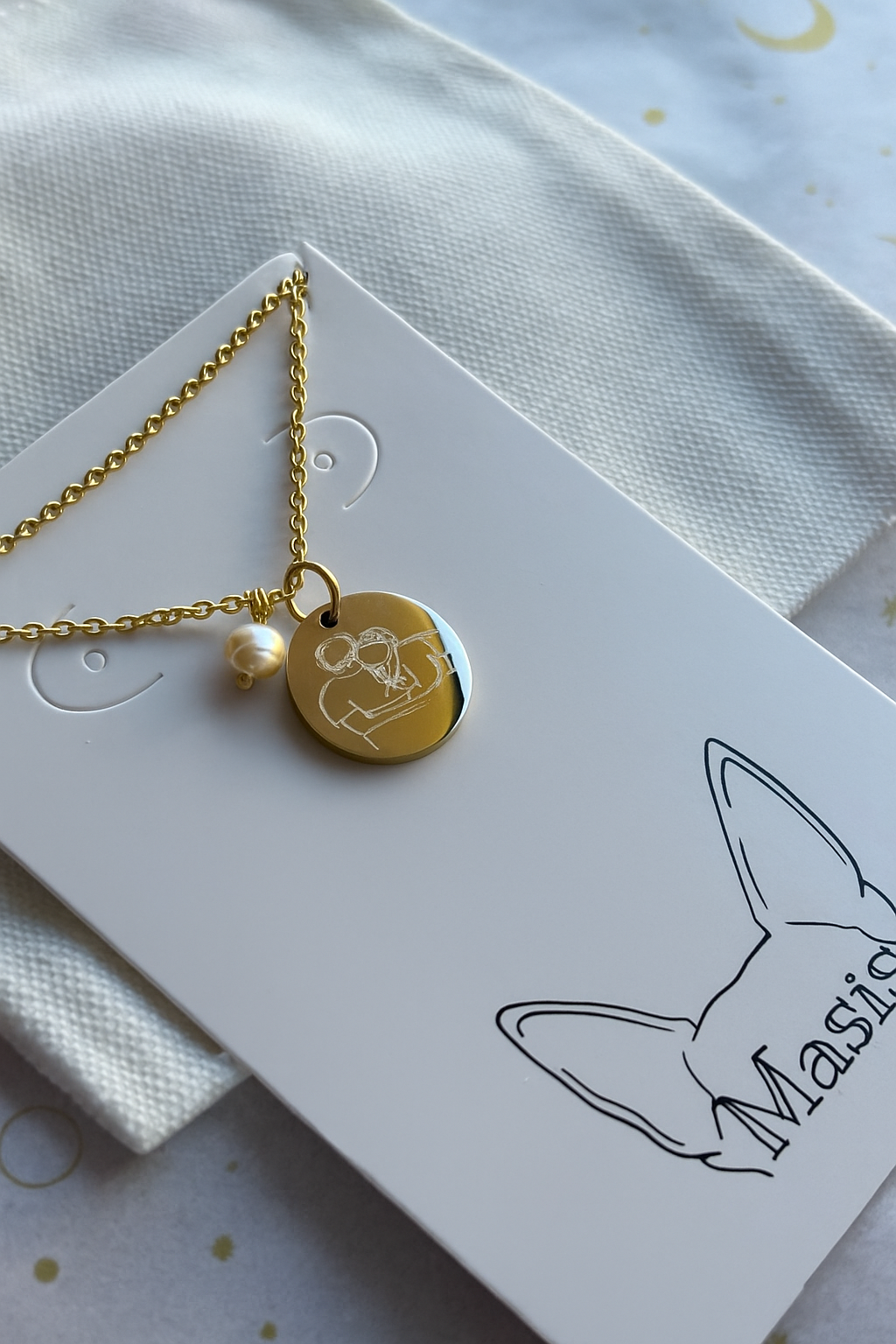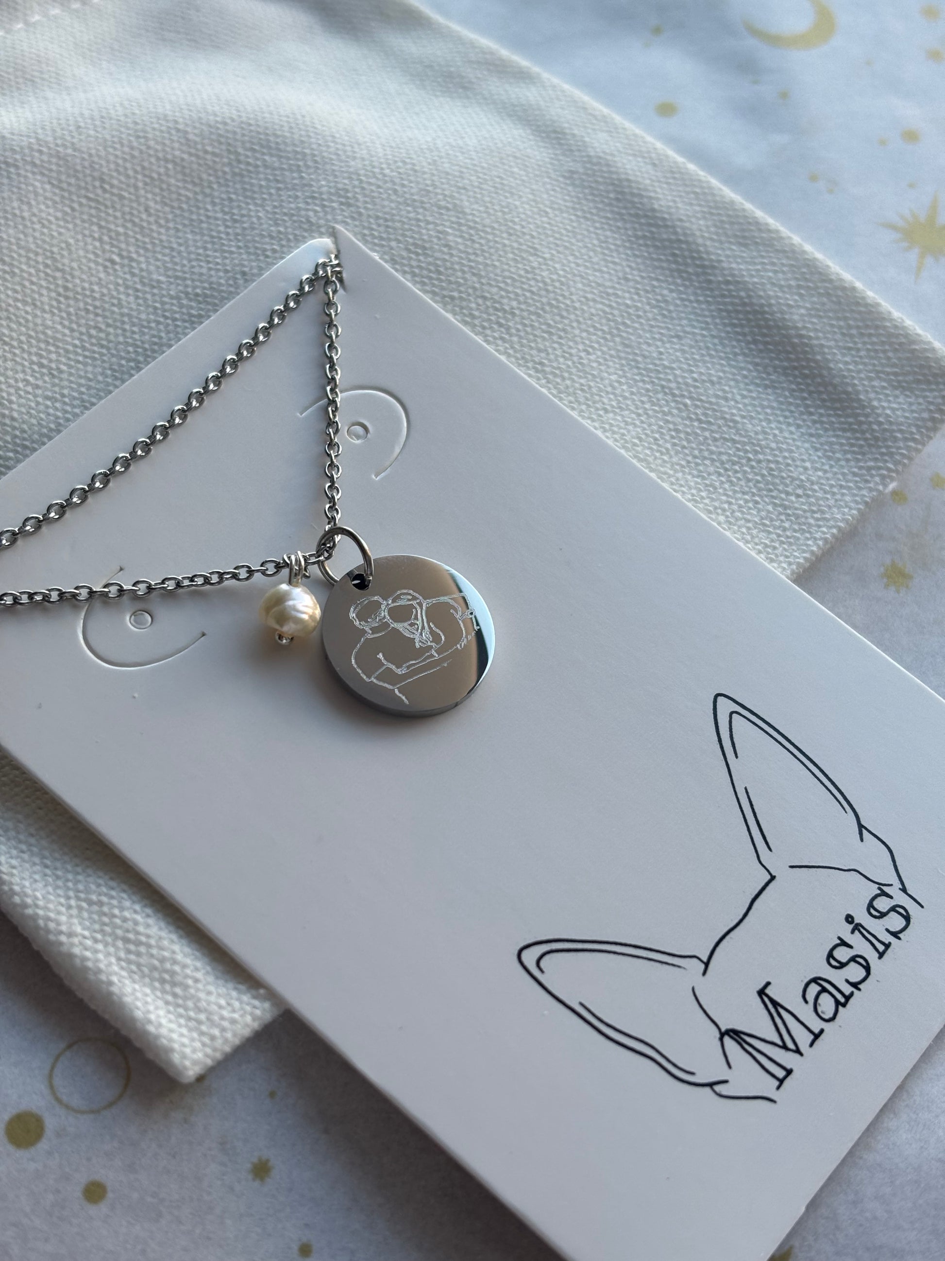 Gargantilla de acero inoxidable disponible en dorado o en plateado, sube el archivo de tu dibujo a línea con fondo blanco y las líneas en negro. Es un detalle perfecto que no pasa desapercibido.