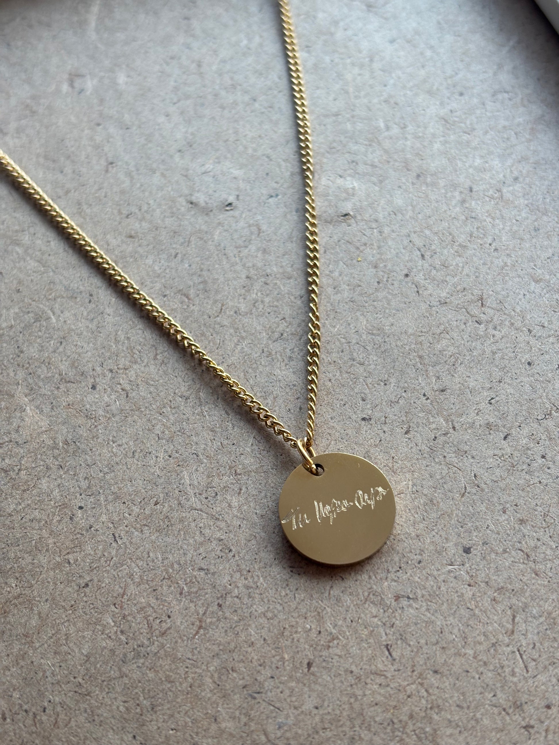 Collar de acero inoxidable con medalla de 15 mm personalizada, La cadena tiene un largo de 75cm