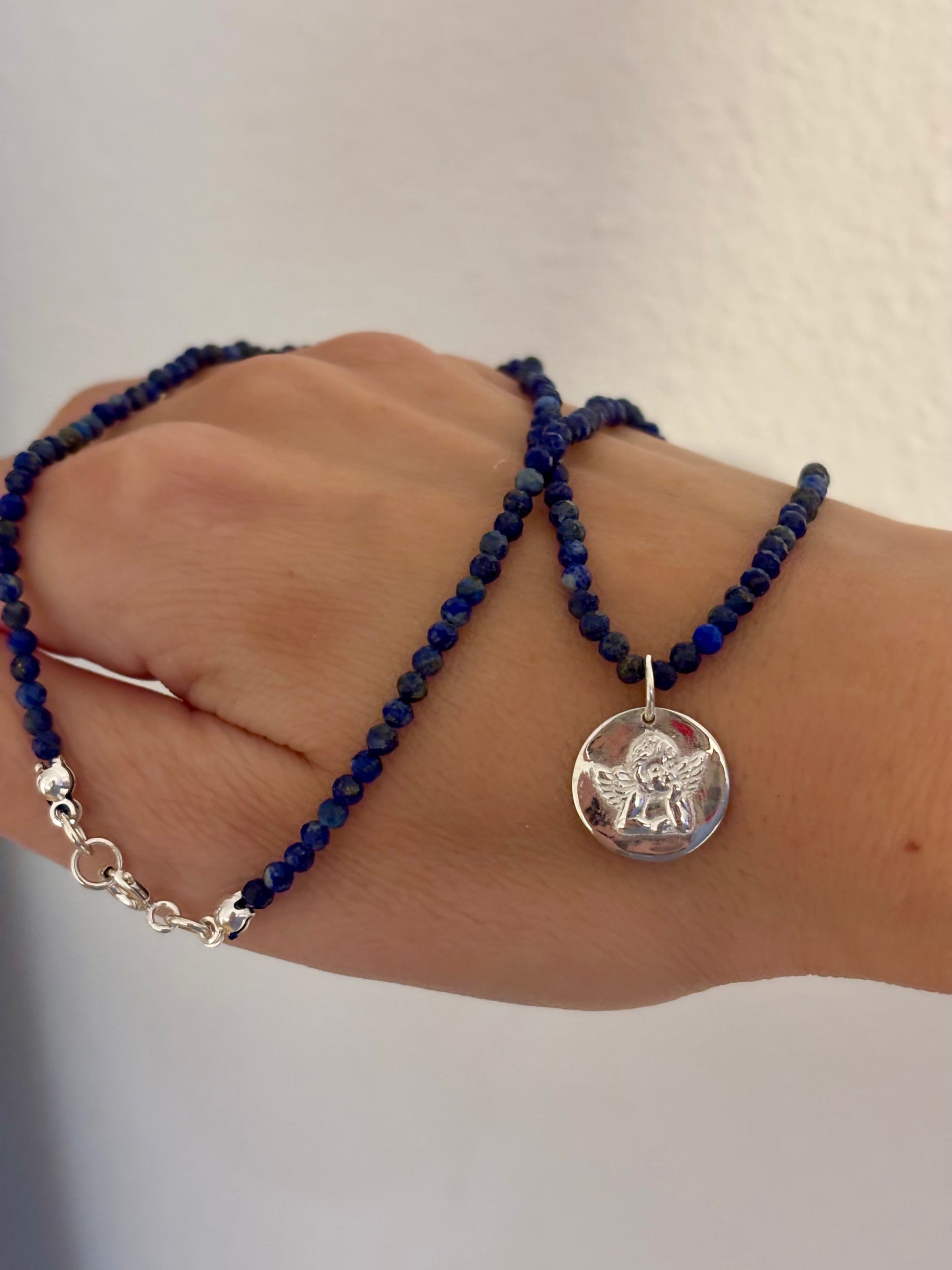 El lapislázuli ha sido desde la antigüedad una piedra asociada a la sabiduría, la claridad mental y la conexión con la intuición. Se dice que abre el tercer ojo y armoniza el plano espiritual, ideal para quienes buscan equilibrio interior y expresión auténtica.