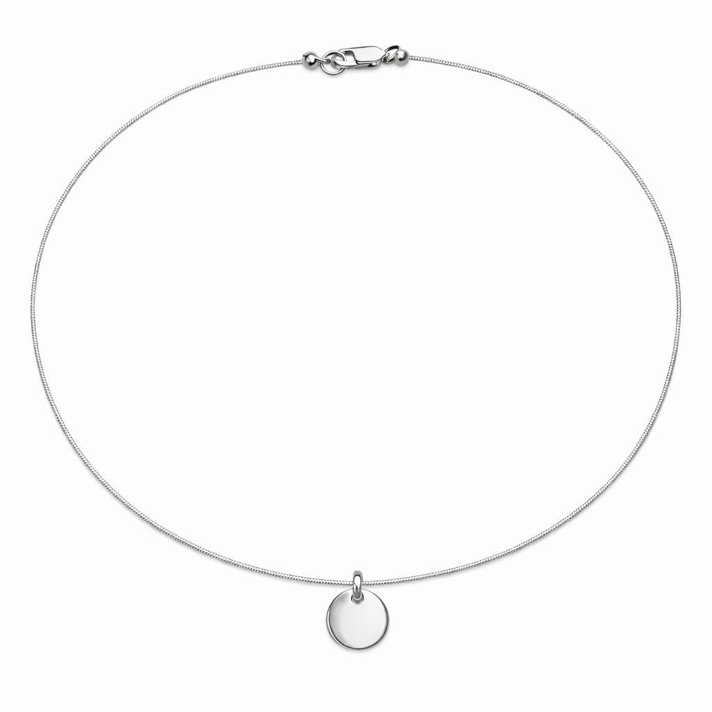 Gargantilla con cordón de algodón en tono dorado y medalla redonda de 10 mm en plata de ley 925 . Puedes personalizar la medalla con una inicial, una palabra o un símbolo.