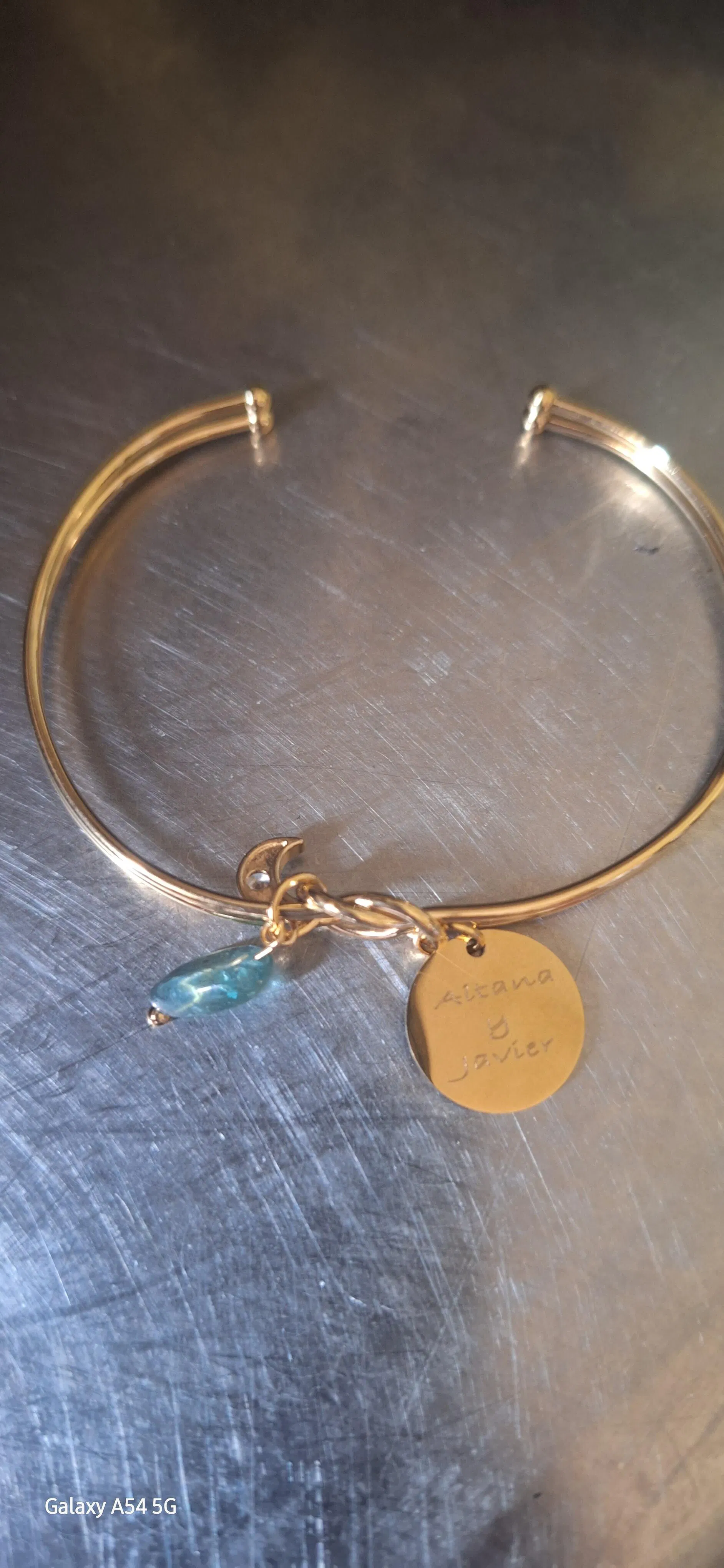 Esta pulsera está hecha en acero inoxidable, con una medalla personalizada, donde puedes escribir el nombre de tus personas más allegadas, fechas o esa palabra que tanto te identifica.