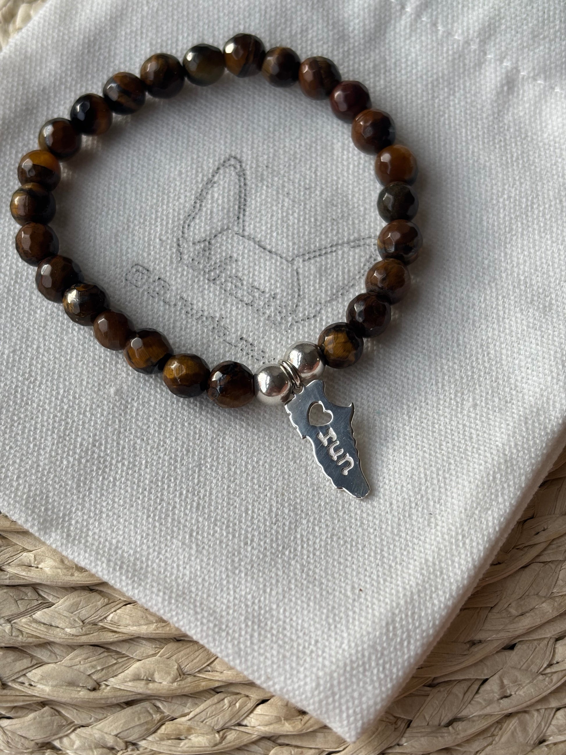 Pulsera unisex de piedra natural con colgante de zapatilla en plata 925, símbolo de constancia, energía y superación.