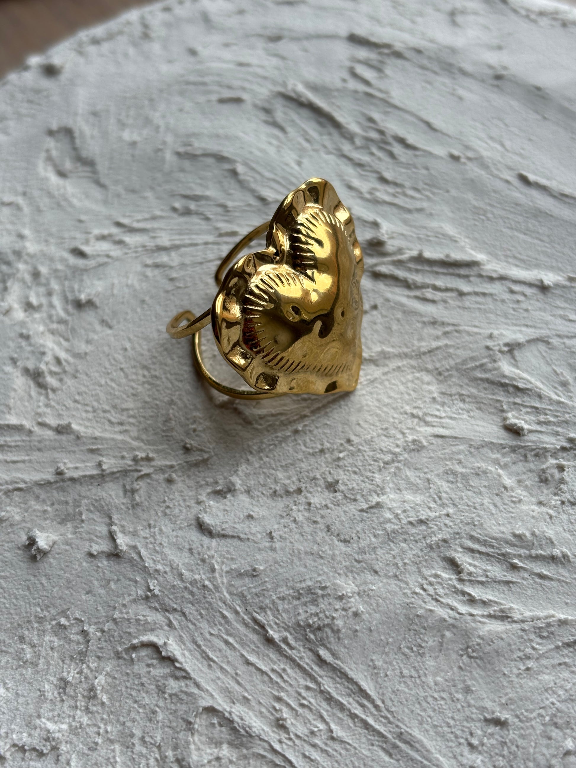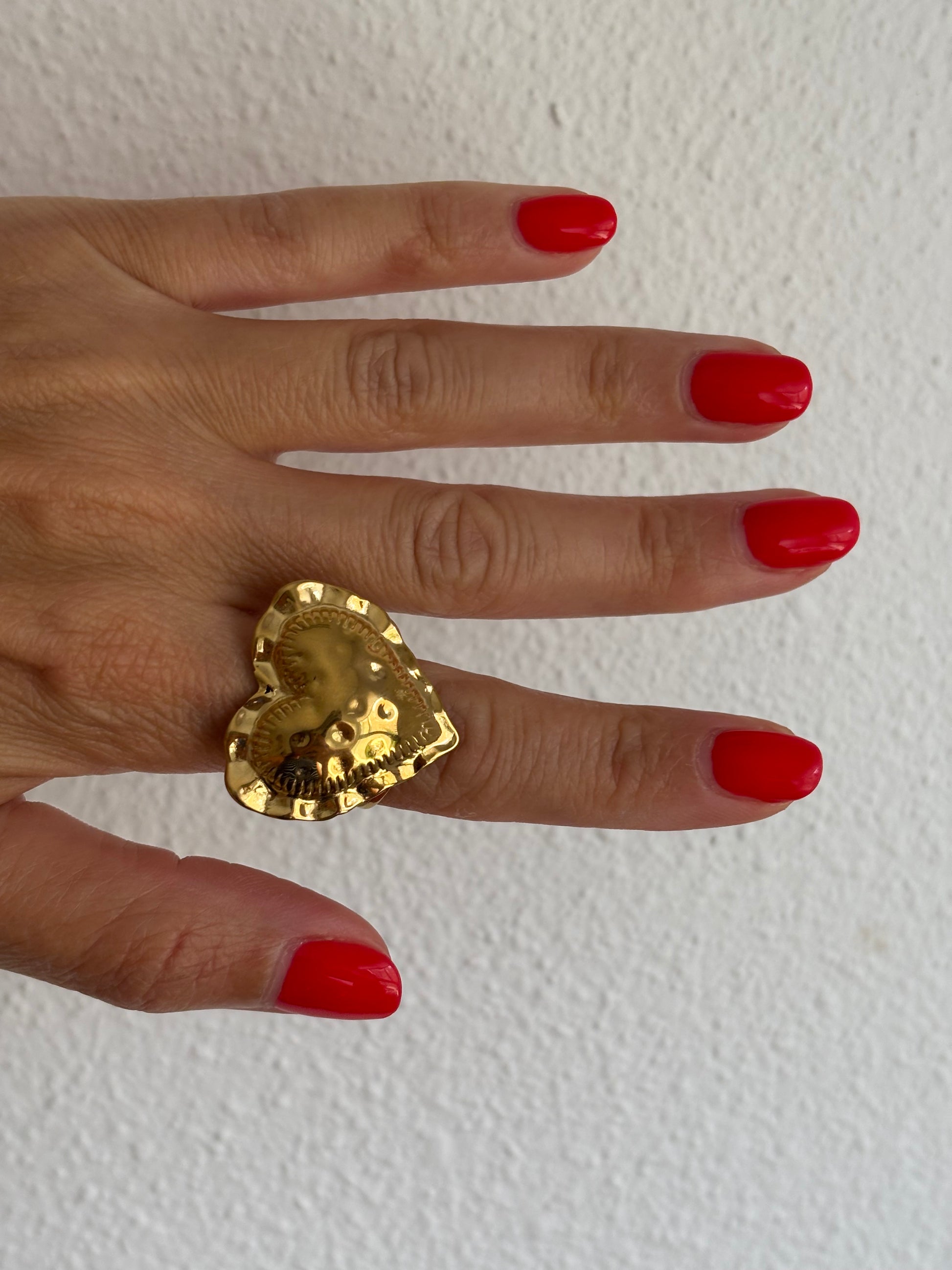 Un anillo en forma de corazón que roba miradas. De acero inoxidable, es resistente y duradero, además de súper llamativo por su original diseño. Disponible en plateado y dorado, perfecto para llevar un toque de amor en tu estilo diario.
