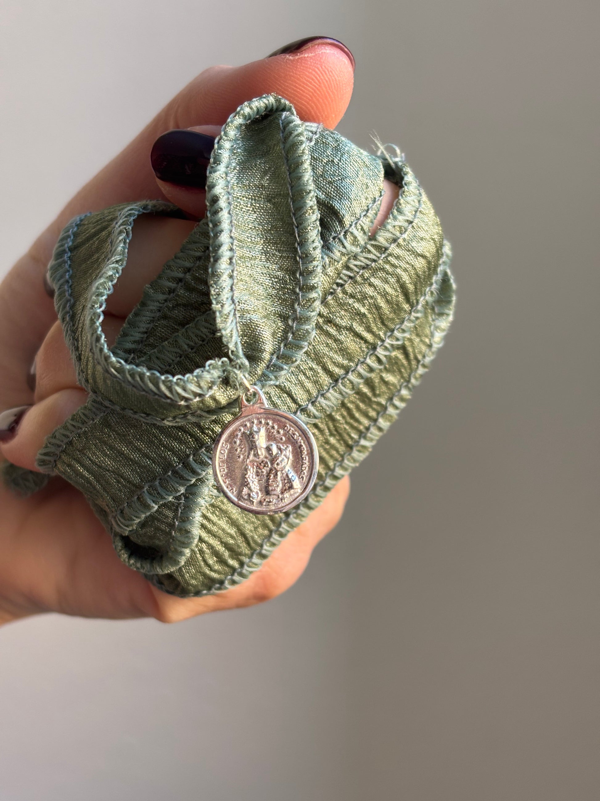 Cinta de seda arrugada de 90 cm, ideal para personalizar con medallas. Úsala como collar ajustable en varias posiciones o como pulsera, según tu estilo.